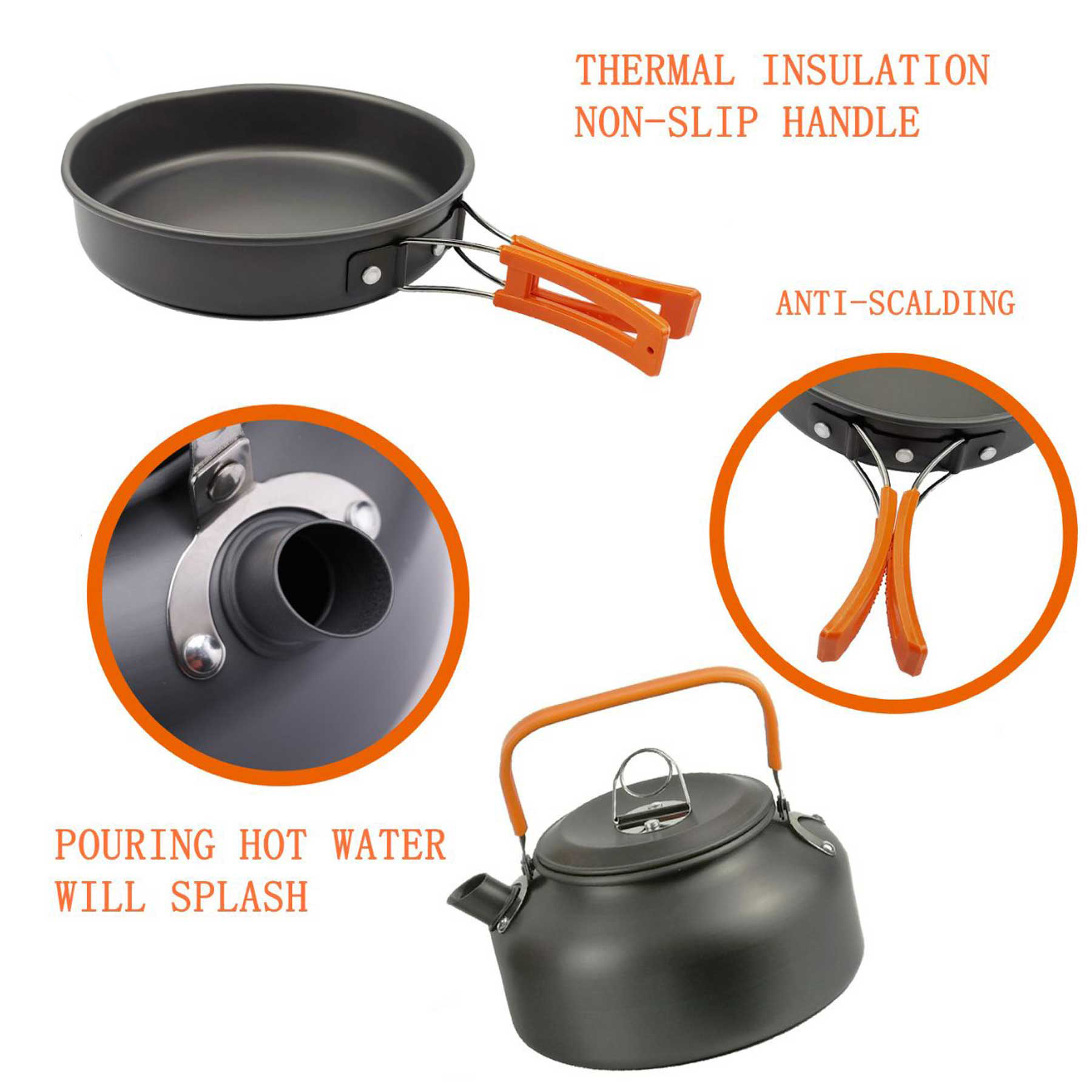 سه قطعه مهم مانند قابلمه، ماهیتابه و کتری مجهز به درب و مناسب برای تمامی شرایط جوی آب و هوا طراحی شده است. این محصول مناسب برای 2 الی 3 نفر طراحی شده است. یکی از خصوصیات این مجموعه ظروف، قابلیت شستشوی آسان توسط انواع مواد شوینده است. همچنین دارای یک ساک توری جهت حمل آسان برای مسافرت است. هرچند که با وزن 780 گرم فوق العاده سبک و قابل حمل است.
