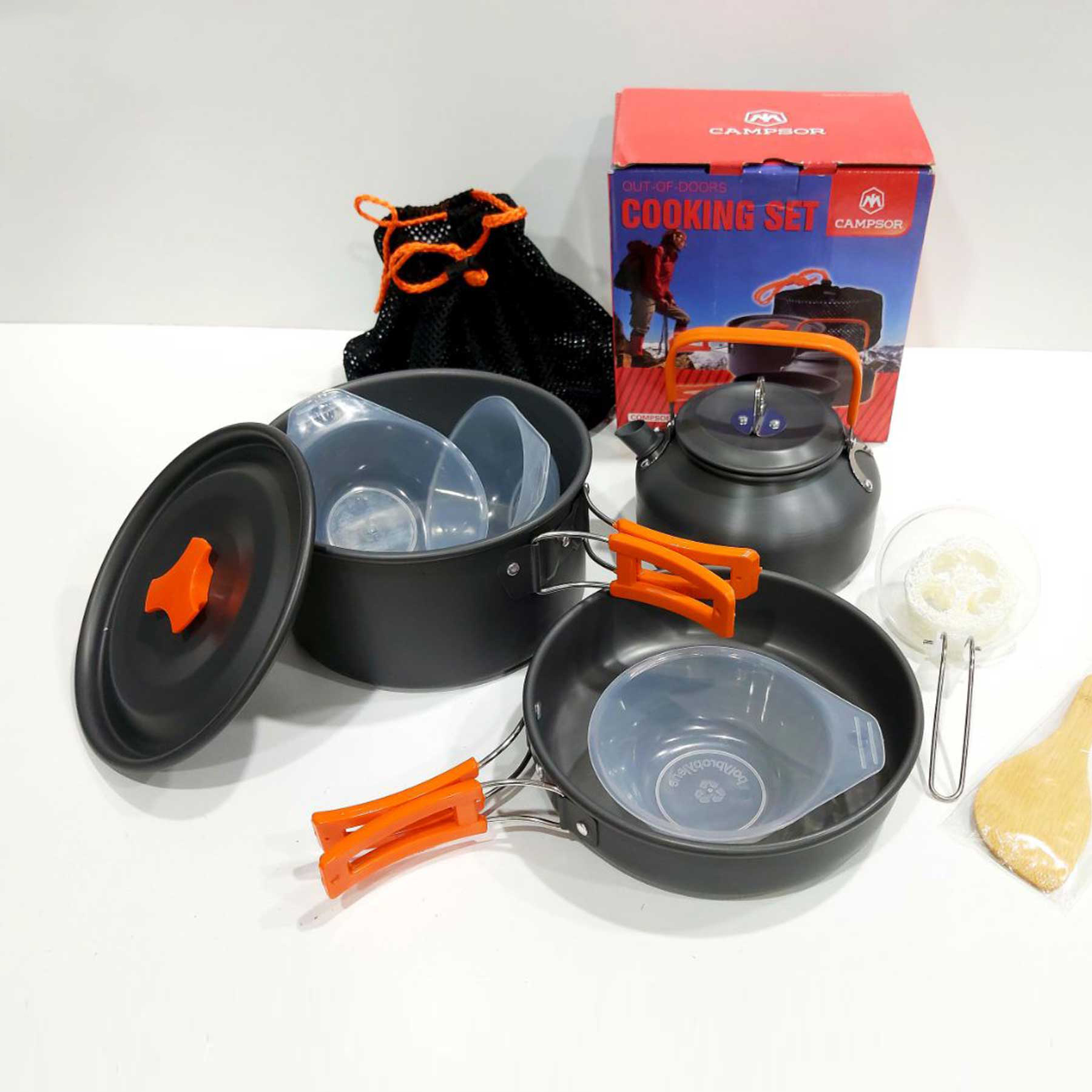 یکی از لوازم های مهم و ضروری برای طبیعت گردی و پیاده روی، ظروف سبک وزن و قابل حمل است. ست ظروف کمپسور مدل 308 یک مجموعه ظروف مسافرتی، سبک و کاربردی مقرون به صرفه است که توسط شرکت کمپسور با بهترین کیفیت، مقاومت و دوام ساخته شده است. این ست ظروف مسافرتی کاربردی دارای یک قابلمه پخت و پز در اندازه 166×68 میلی متر، یک ماهیتابه در اندازه 167×39 میلی متر، یک کتری با ظرفیت 0.8 لیتر، کفگیر، ملاقه، سه تا کاسه کوچک پلاستیکی و اسکاج است که هنگام پخت و پز غذا و دم کردن چای و انواع نوشیدنی گرم در مسافرت، کوهنوردی و گردشگری نیاز شما را به خوبی برطرف می کند.