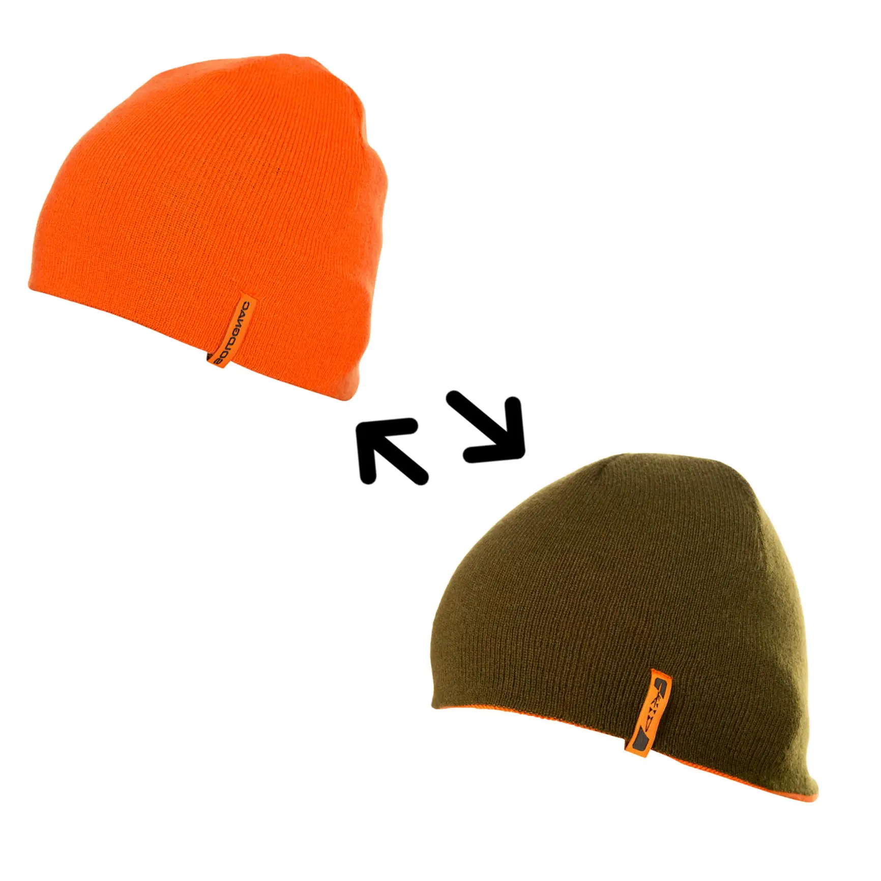 کلاه دو رو سولوگناک با طراحی کاربردی برای طبیعتگردی، پرندهنگری و شکار؛ یک سمت سبز برای هماهنگی با طبیعت و یک سمت نارنجی با دید بالا برای افزایش ایمنی در محیطهای باز.
